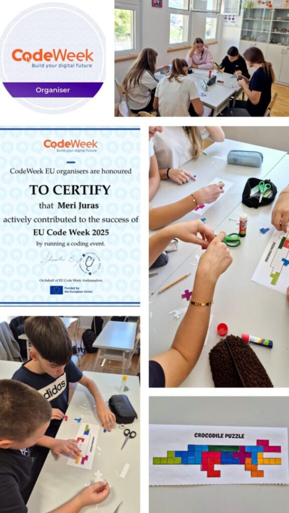 U okviru obilježavanja Europskog tjedna programiranja (EU Code Week), učenici 7.b razreda pod vodstvom nastavnice Meri Juras sudjelovali su u međunarodnoj aktivnosti „Napravi zagonetku“ (šifra: cw25-sofRV). Tijekom aktivnosti učenici su kroz igru i suradnički rad izrađivali logičke zagonetke koristeći principe vizualnog programiranja. Na taj su način razvijali kreativnost, logičko razmišljanje i vještine rješavanja problema, istovremeno podižući svijest o važnosti programiranja kao suvremenog i inkluzivnog alata za učenje i stvaranje.