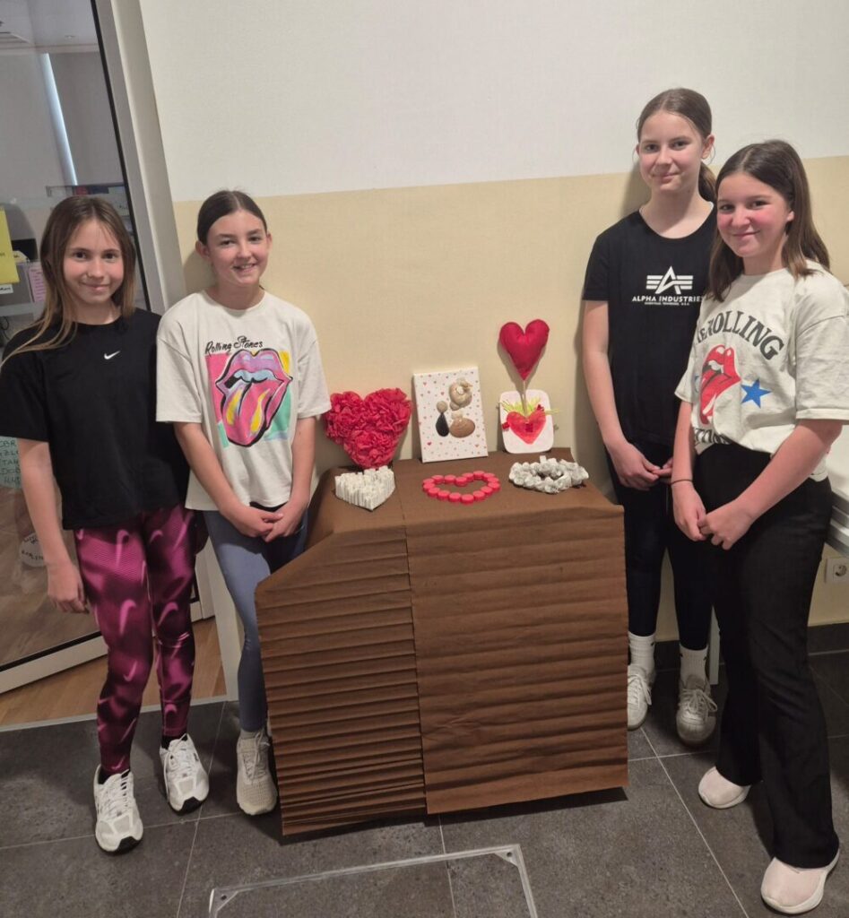 Valentinovo je dan kada izražavamo ljubav i pažnju prema onima koje volimo. Povodom ovog posebnog dana, učenici naše učeničke zadruge i mali knjižničari udružili su snage te izradili kreativne proizvode od recikliranih materijala, izražavajući tako ljubav i zahvalnost.