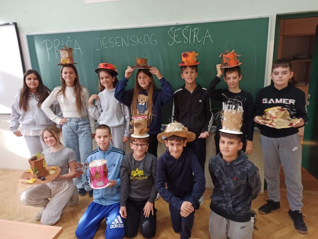 Na satu Hrvatskoga jezika, u sklopu projekta „Priča jesenskog šešira“, učenici 5. a razreda izrađivali su maštovite jesenske šešire. Bili su šareni i razigrani, ukrašeni lišćem, kestenjem, grančicama i raznim drugim prirodnim materijalima koji su učionicu pretvorili u pravi jesenski kutak. Lijepilo se, rezalo i  ukrašavalo, a svaki je šešir dobio svoju posebnu čaroliju. Kada su bili gotovi, učenici su ih ponosno predstavili pred razredom i ispričali njihove čudesne priče. Atmosfera je bila vesela i razigrana. I nastavnica i učenici bili su iznimno zadovoljni prekrasnim radovima.
